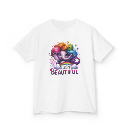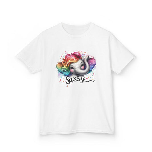 Sold outSassy Rainbow Hair Elephant Kids Tee